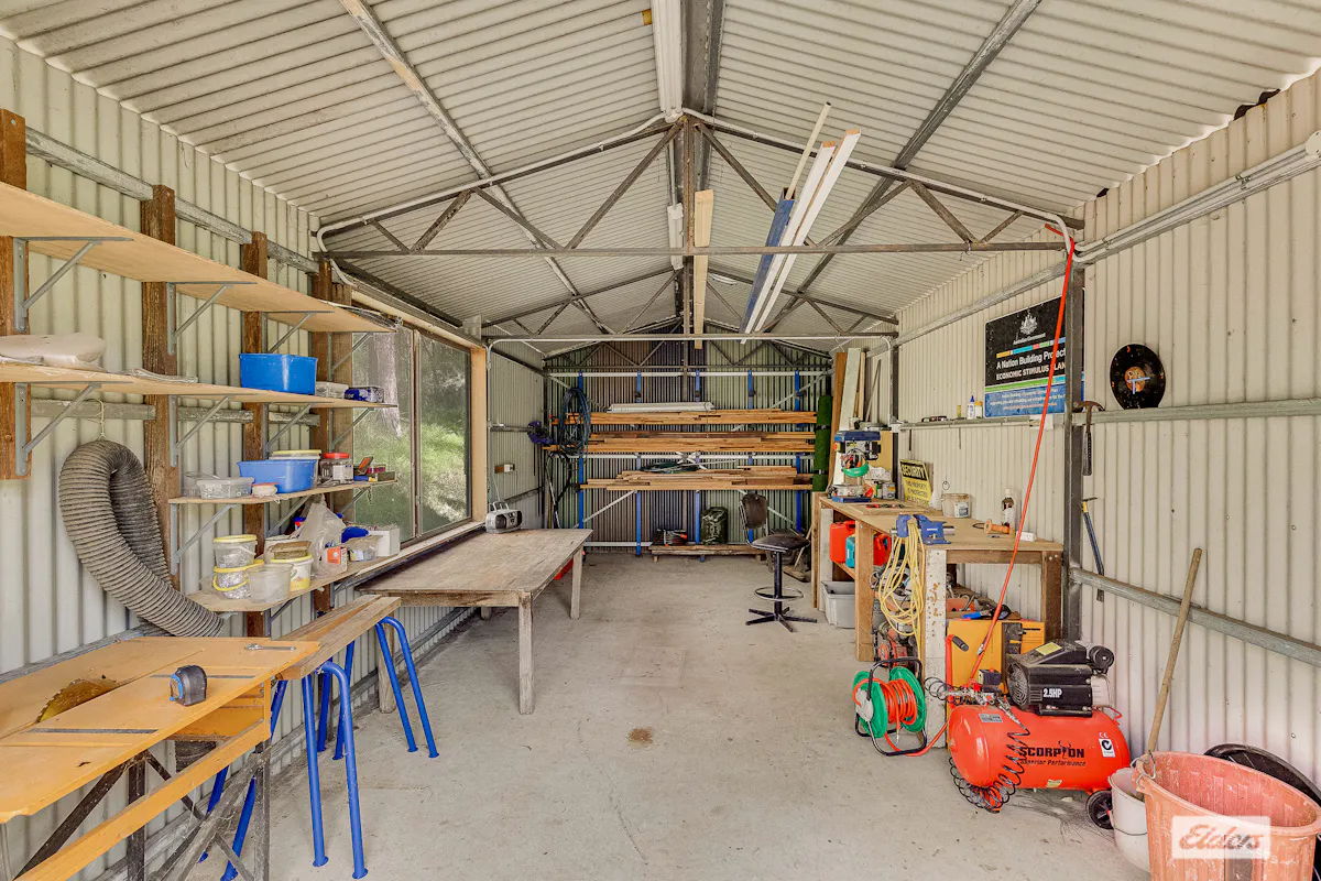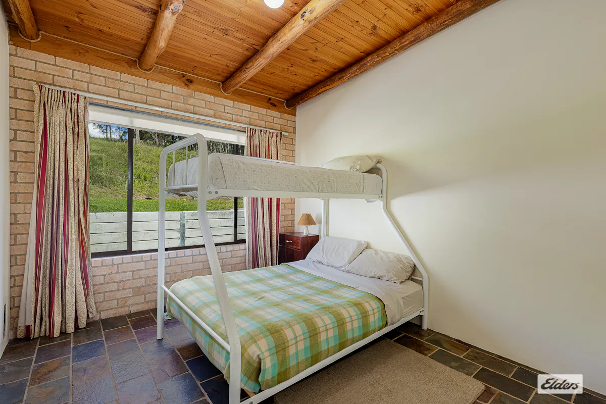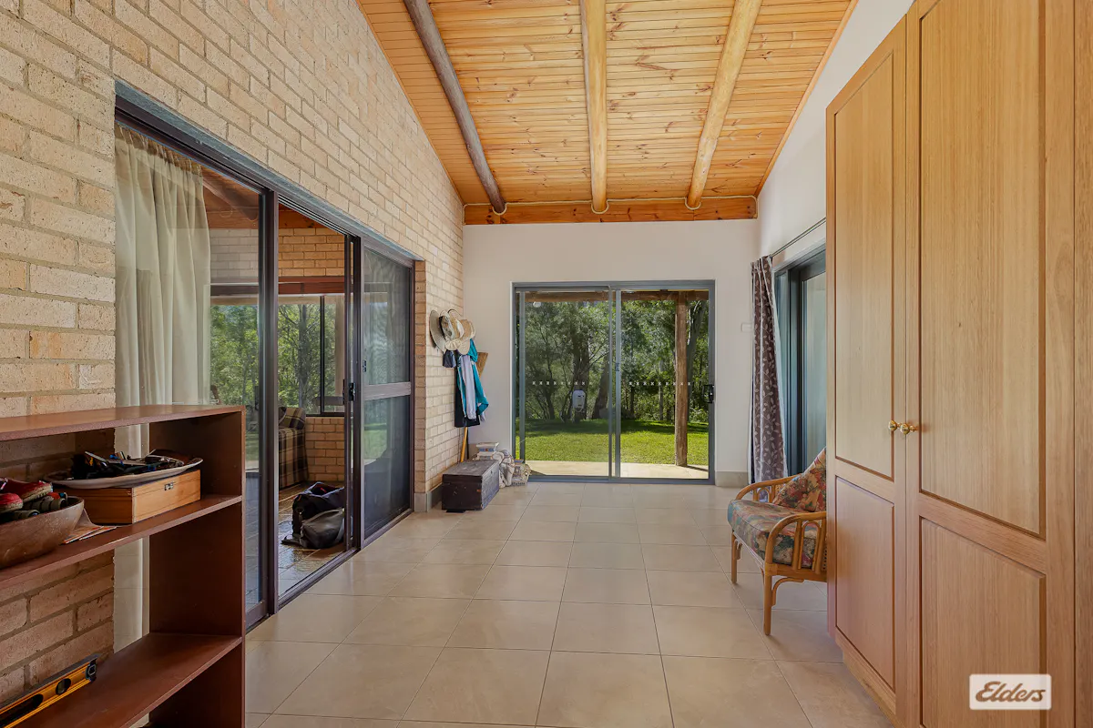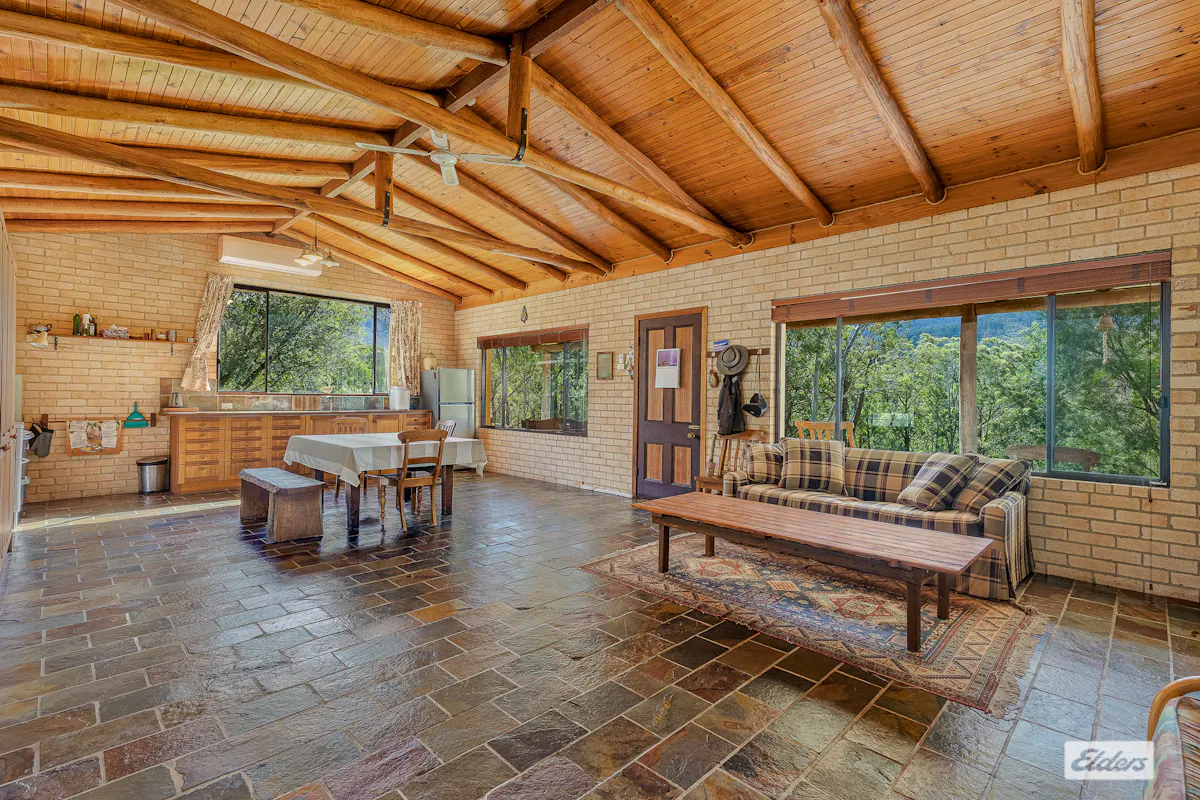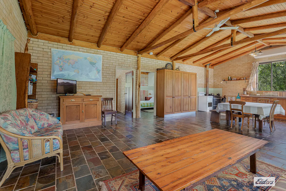The double brick three bedroom, one bathroom home with built in robes and slate flooring offers relaxed cosy living, supported by excellent water infrastructure with water pumped directly from the river to two large tanks and gravity fed back to the house.